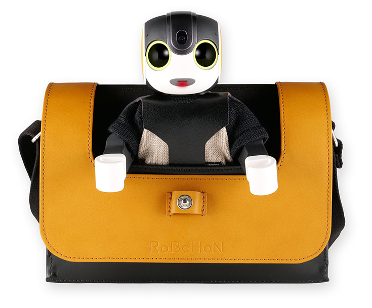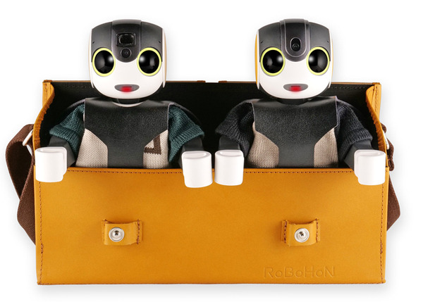 ロボホンポーチ(ダブル)とロボホン本体(以下の写真すべて:今回発表の製品にはロボホン本体は含まれない)