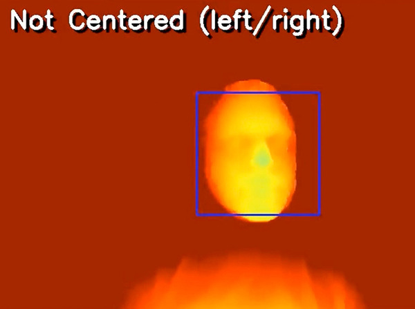下の動画は、顔が、上下左右の設定範囲を超えた場合、左上に状態を表示した例。