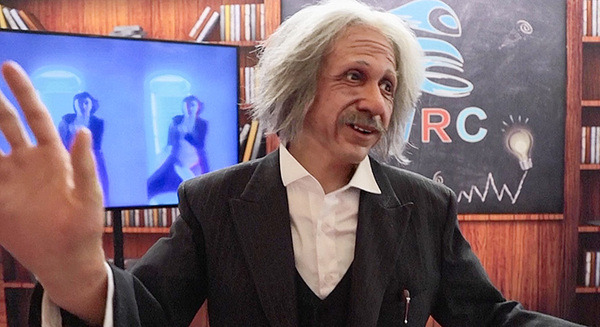 ヒト型ロボットによる歩行デモ、コミックに登場しそうな女性型アンドロイド、アルバート・アインシュタインを模したアンドロイド、ピアノを演奏するロボット、コンベアに荷物を運ぶロボットなどが展示され、ひと目を引いていた。。