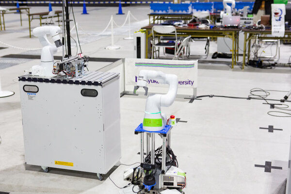 ロボットのSIerの人材創出と育成を目的に、全国の高校生を対象とした競技会「高校生ロボットSIリーグ」が2022年度から開催される。そのトライアル大会がこの会場でおこなわれた。半田工科高等学校、春日井工科高等学校、愛知総合工科高等学校の3校が参加。