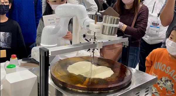 イライラ棒を見事にこなすロボットと競争するイベント、デンソーウェーブのコボッタを使った数々の調理ロボットの実演などにも、家族連れの長い列。