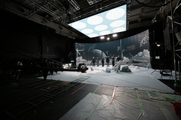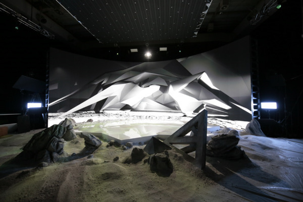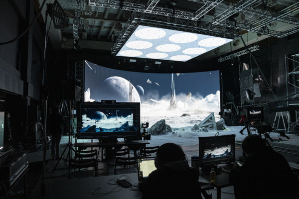解像度9,600×3,456ピクセル(横15.2m×高さ5.4m)のCrystal LED Bシリーズ(LED画素ピッチ1.58ミリ)を曲面状に配置し、高精細な映像を高輝度・広色域・高コントラストでバーチャルプロダクションに最適な画像をリアルに描き出す。照明の反射を抑える低反射コーティングと広い視野角は、自由なカメラワークでの撮影を可能にする。