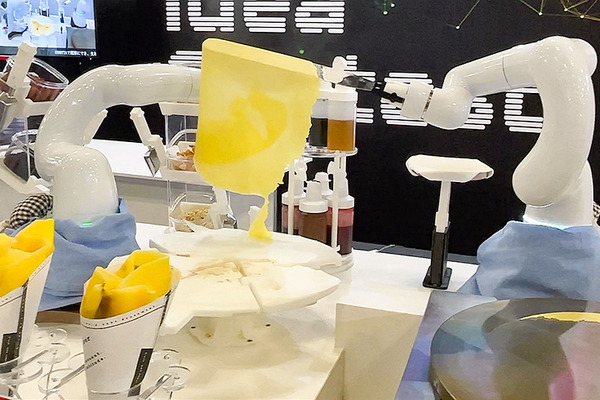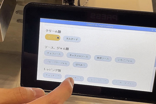 クリーム、ソース・ジャム、トッピングなど、タブレットを使って選択すると、後はロボットが適切な内容で自動でクレープを作ってくれる。味のバリエーションも増えた。前回のデモより、人が介入する作業が減り、より自動化がブラッシュアップされた。