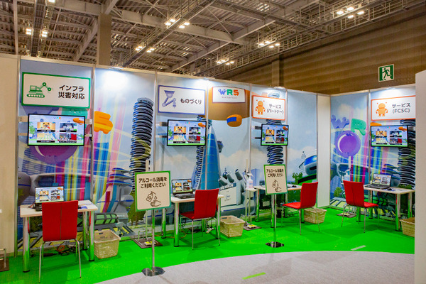 ロボット競技になぞらえて、ロボット操作やロボットによる作業を体験できるコーナーを設置し、「インフラ災害対応」「ものづくり」「サービス(パートナー)」「サービス(FCSC:フューチャー・コンビニエンス・ストア・チャレンジ)」のカテゴリー等を体験できた。