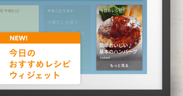 今回のアップデートではAlexaスキル「クックパッド」を「Amazon Echo Show 15」の15.6インチ壁掛け型HDスクリーンに最適化することで、一度に表示できる情報量や表現が向上。レシピ表示画面では手順や材料を一度に表示することが可能になり、レシピの全容を把握しながら調理することができるようになる。また、「今日のレシピ」というウィジェットをホーム画面に追加することで、日替わりで紹介されるレシピを確認することができる。