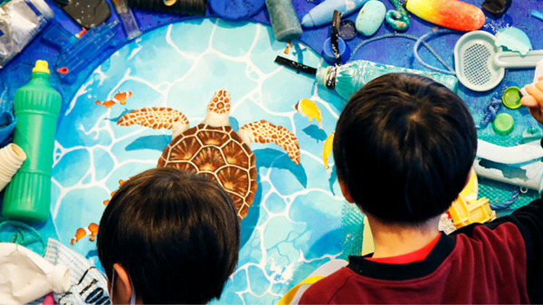 沖縄の地元の学生と清掃活動を行うボランティアと共同で制作した「未来へ」は、美ら島自然学校で2022年9月4日(日)までの展示を予定している。