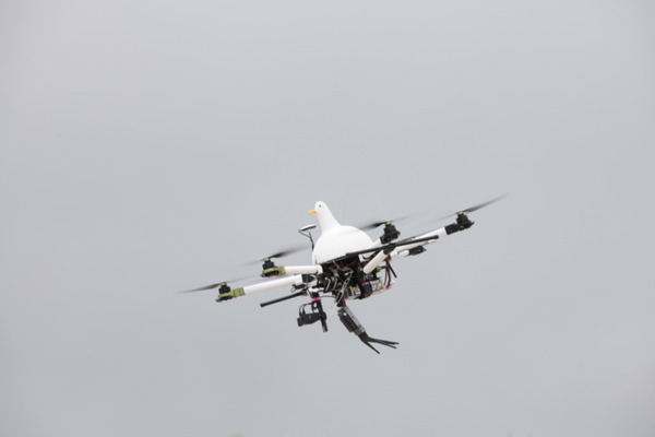 第二部では海岸にてウミガメ型海洋ごみ回収ドローンを活用し、遠隔操作による海洋ごみ回収のデモンストレーションを行った。実際に空から海洋ごみを探すカモメ型ドローンの映像とウミガメ型海洋ごみ回収ドローン視点の映像をリアルタイムに見ながら、遠隔操作を行うスマートフォンを操作し、海洋ごみに見立てたサンプルを回収した。