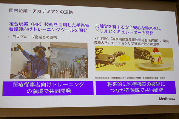 また、トレーニングや最新技術の開発にも注力していて、MR技術を用いた手術室看護士向けトレーニングツールや「力触覚」の整形外科ドリルやシミュレータの開発にも取り組んでいるという。