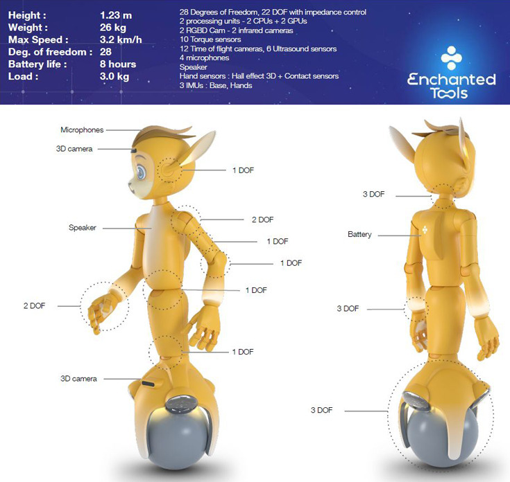 このプロジェクトには4つの企業が関わっています。ひとつは今回紹介したEnchanted Tools社で約60人。キャラクターのデザインや動き、インタラクションは、私が設立したもうひとつの会社であるSPooNが担当しています(SPooNはアニマルインタラクションを採用したコミュニケーション・サイネージを開発、豊田通商が日本市場に紹介した経緯がある「関連記事:AI会話や遠隔ロボットで非接触の顧客対応を実現 多言語翻訳も「あいちロボットショーケース」レポート(4)」)。SPooNでは約30人が働いています。他にオルトパスやポレン・ロボティクス(Pollen robotics)から約15人ずつ従事しています。4つの企業合わせて110~120人がこのプロジェクトに関わり、うち1/3が元アルデバランやソフトバンクロボティクス・ヨーロッパにいたスタッフ達です。