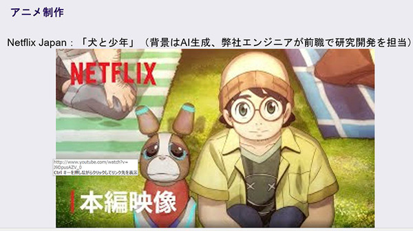 また、Netflixのアニメ「犬と少年」では背景だけをAIが生成しているという。