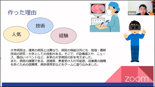 受賞した横田さんは「中学生になったらみんなレベルアップしていたので、僕も次回からはスクラッチからレベルアップして、もっと多くの要素を付け加えできるC++やPythonも勉強して、新しいシミュレーションゲームを作りたいと思いました」と語った。