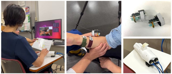 実験では、触覚センシングと4K解像度の動画を統合した後、遠隔地で動画と紐づく触覚を再現した。上腕部の各部位(骨部・筋肉・腱)の触感再現と弁別、各部位の弛緩・緊張状態の弁別や逐次変化の再現・確認が複数の医師によって行われた。
