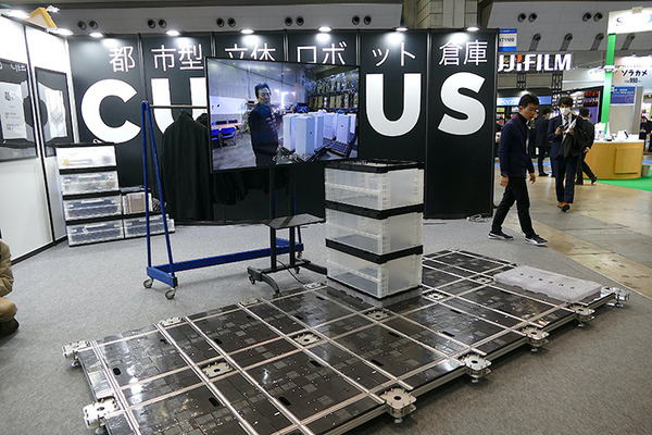 Cuebus(キューバス)は リニアモーター内蔵のタイルと、磁石内蔵のトレイを使った独自方式のロボット倉庫「CUEBUS」の最新型(第3世代)を出展。耐荷重を100kgとし、レール幅も改良。耐久性や精度も向上させた。