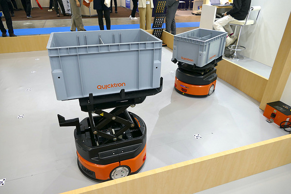 Huaweiは「QuickBin」という物流向けロボットソリューションを動態でデモ。ピッカーと搬送用の2種類のロボットを共同させるソリューションで、日本国内では2023年10月に三井物産グローバルロジスティクス(MGL)が導入している。