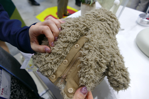 TPRは昨年プロトタイプを紹介していた「CoRoMoCo(コロモコ)」の改良版を出展。今年夏頃に法人向け販売を検討しているとのことだ。脇の下にあったバイタルセンサーは廃止、また着ぐるみ部分は脱がせやすくなった。充電用台座の上に起きやすくなり、ちょっとした動きも能動的に可能になった。