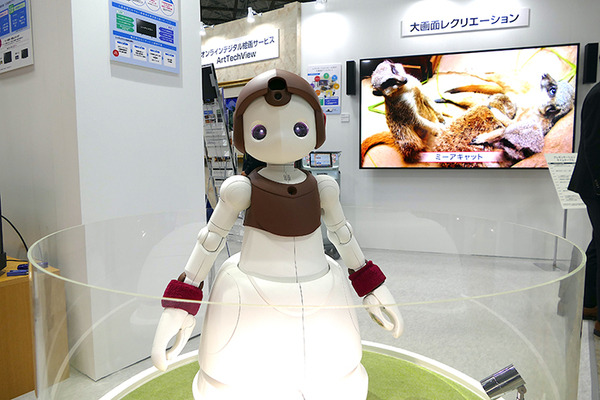 ソニーマーケティングは介護施設内の居室で使うテレビのレンタルプランのほか、お手元テレビスピーカー、レクリエーションで使うための大画面ディスプレイ等のほか、子ども型見守り介護ロボット「Hanamoflor(ハナモフロル)」を参考出展した。