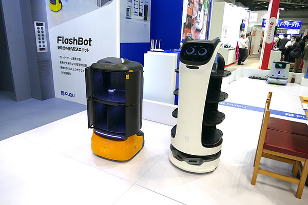 Pudu Roboticsは配膳ロボットや館内配送ロボット、掃除ロボットをアピールしていた。同社のサービスロボット出荷台数は累計で7万台を超えている。