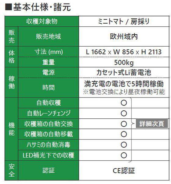 欧州での価格は、セルトンによる販売とサポートとなることもあって公開されなかった。推測だが、地域やトマトの品種、施設によって自動運転や自動判別などのAI精度を調整する必要もあるので、現場に応じたカスタマイズが少なからず必要となり導入費用にも影響してくるだろう。