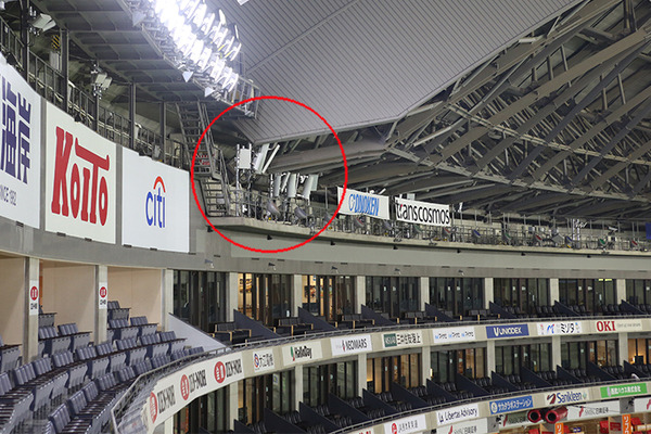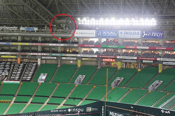 観客約4万人のうち、ソフトバンクユーザーの通信を支えている基地局は球場内に2箇所、6階付近のほぼ対角線上に設置されている。もちろん、NTTドコモやauなど、各社の基地局も球場内に設置されている。