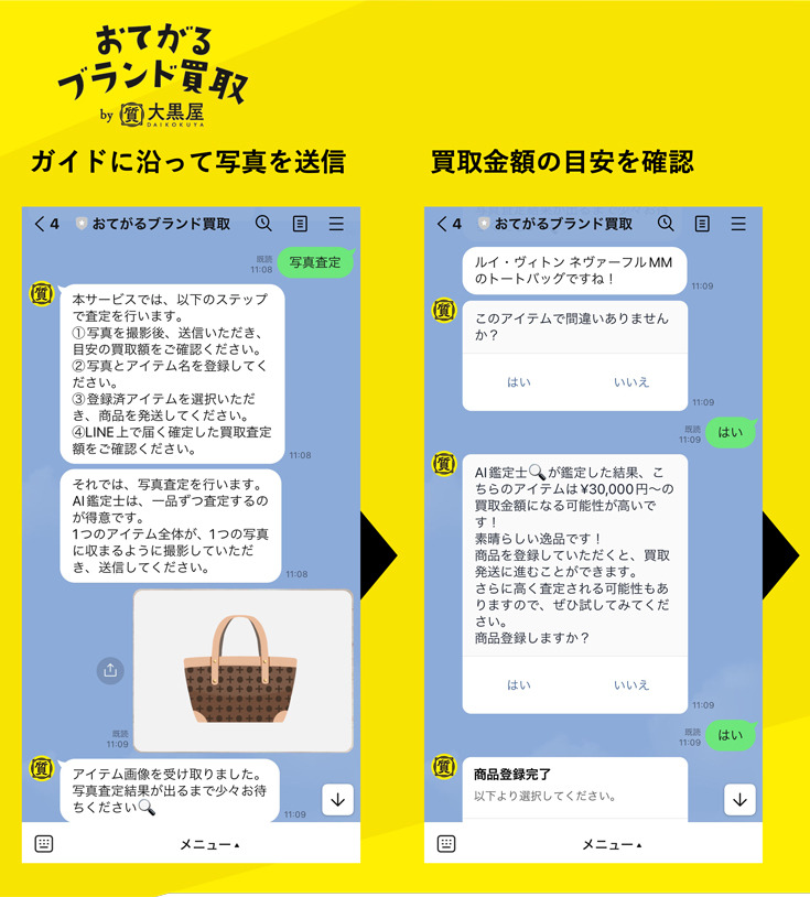 大黒屋が推進するAIを活用した査定技術の一つとして、「おてがるブランド買取」の提供を2024年7月から開始している。
