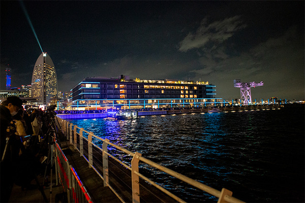 大さん橋から見る「ハイライト・オブ・ヨコハマ」は音と光のコラボが楽しめて、まるで街全体が生きているかのようにキラキラと煌めき輝く様子は圧巻でした。