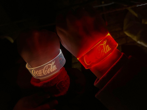会場の観覧席(整理券を配布)では、コカ・コーラの光るブレスレットが配られ、気分は最高潮に盛り上がっていました。