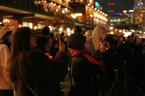 そして、更にはコカ・コーラとヨルノヨとのコラボで特別ライトアップも登場。普段は横浜らしく青が貴重のイルミネーションが、「コカ・コーラ」の赤でに染まり、クリスマスムードに包まれました(特別カラーライトアップは12月9日(月)にも開催されます)。