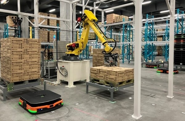 無人フォークリフト、無人搬送車、ピッキングロボットを連携させて導入するため、従来のコンベヤーなどの固定設備が不要で、倉庫のレイアウトや拡張などにおいて、汎用性が高いソリューションとなっている。