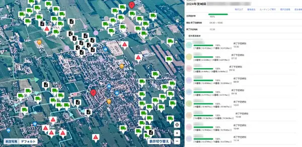 遠隔でリアルタイムに当日の散布進捗を確認することが可能。