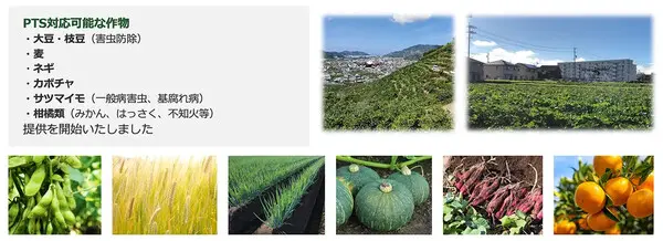 オプティムが2022年より実施してきた水稲での「ピンポイントタイム散布サービス」の経験やノウハウを基に、今後は柑橘類をはじめとして、大豆・枝豆、麦、ネギ、カボチャ、サツマイモ等のさまざまな作物で「ピンポイントタイム散布サービス」を提供し、散布DXを実現する。