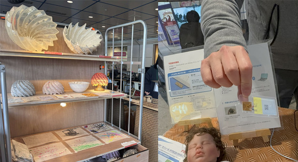 株式会社博展による3Dプリントと伝統工芸を融合させた洗練された外観を持つ展示物、東芝が開発した「世界最小クラスBluetoothモジュール」のようなテック100%の展示物が脳の違うツボを刺激してくる。