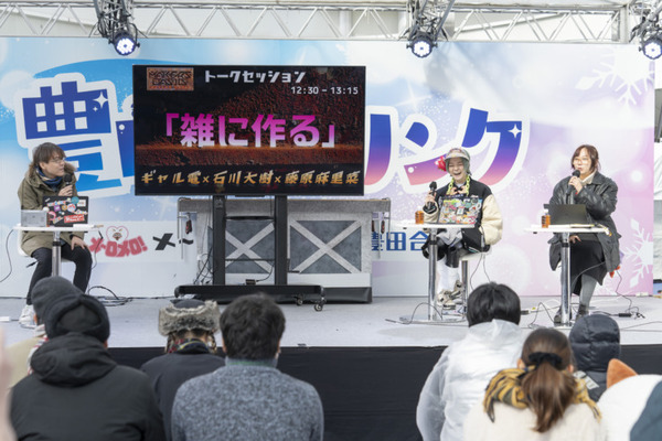 トークセッション「雑に作る」では、執筆者3名が自身の作品について、発想の経緯から発表の仕方までを紹介した。有名Webメディアや人気YouTubeチャンネル、さらには国営放送など多様なメディアに取り上げられ、広く認知されている石川大樹さん、藤原麻里菜さん、ギャル電さんの3名。それぞれが突飛なアイデアを次々と披露するが、その背景や制作のストーリーを聞くうちに、「こんな変なものがあるのも当然かもしれない」と思わせる説得力があった。