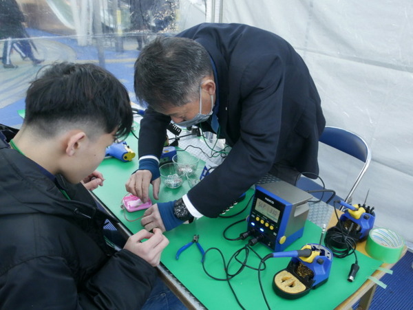 メイカーイベントとしては立ち寄りやすい繁華街のイベントスペースで開催していたためか、ギャル電の教えを請う女子率が高い。