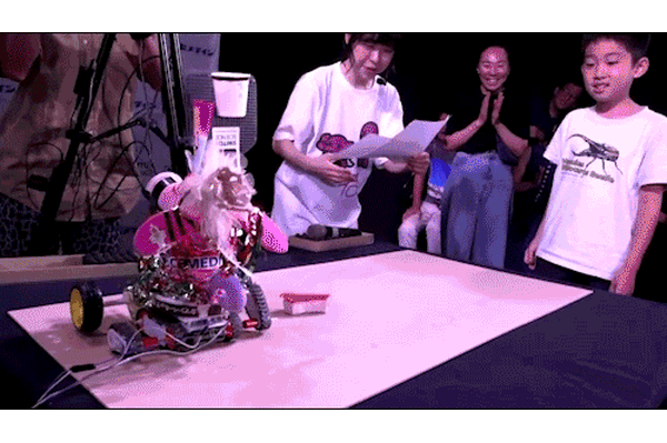 全国大会にこういう素材感のロボットが出てくることがあるのか!?と思われるかもしれないが、ある。なぜなら予選はなく出場権は抽選だからだ(ユーホーマシーン/あなはら)