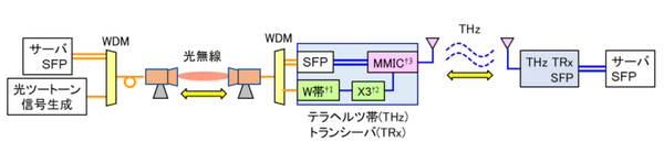実証2:テラヘルツ帯・光無線縦続接続通信実験