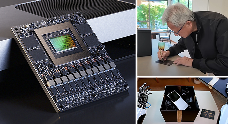 同社が制作したビデオでは、CEOがメッセージカードを添えて、新型の「Jetson AGX Thor」をギフトボックスに入れて贈る。それを受け取ったヒューマノイド達が感激して喜んでいる様子がコミカルに描かれている。