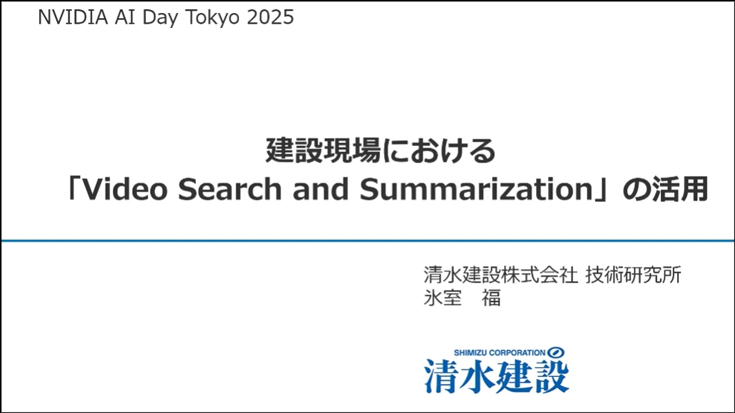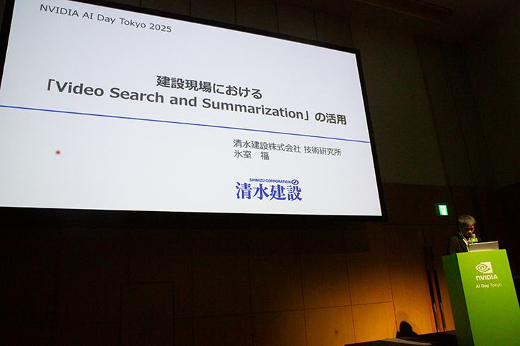 大手総合建設業企業の清水建設は、建設現場の作業状況や潜在リスクをモニタリングするため、動画検索、要約(VSS)向けのNVIDIA AI Blueprintをいかに活用しているかを紹介した。