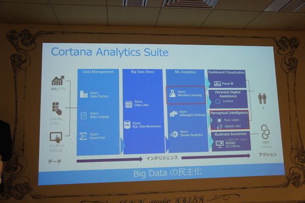 日本マイクロソフト株式会社 クラウド&エンタープライズビジネス本部 業務執行役員 本部長 佐藤久氏からは、クラウド型AI(人工知能)の実現に向けたお話。