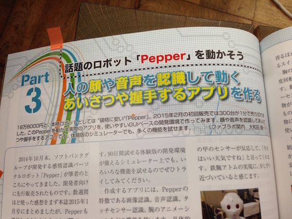 購入後、日経Linux 2015年5月号にPepperアプリ開発に関する記事を執筆されました。