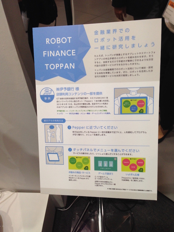 Pepperくんいました。伊予銀行での導入事例を紹介していました。