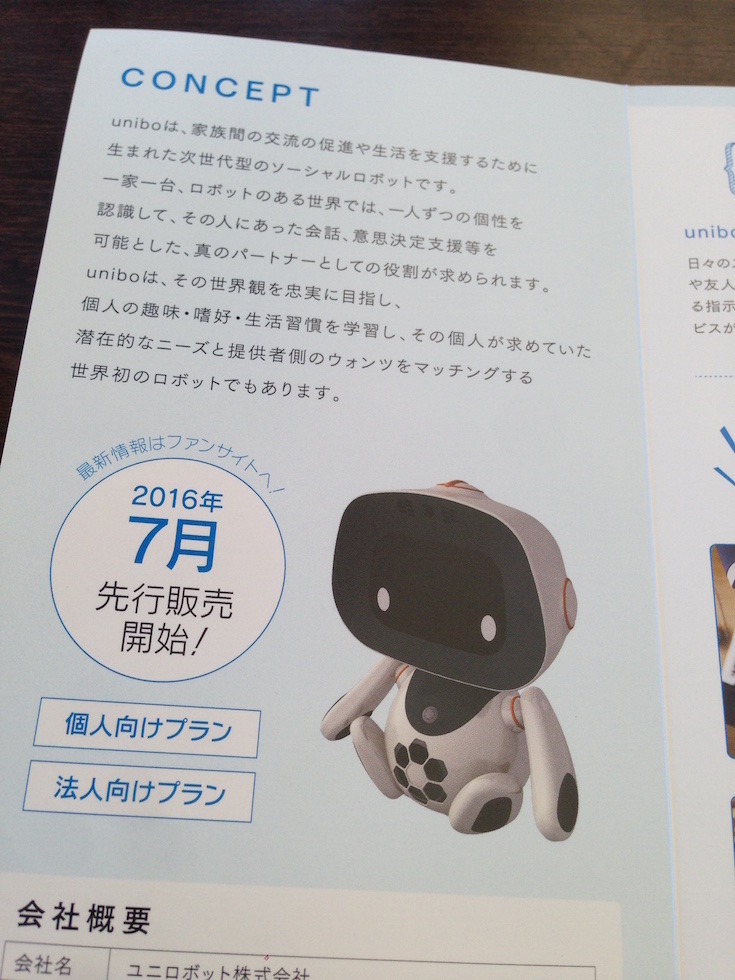 uniboのコンセプトは「家族間の交流の促進や生活を支援するために生まれた、次世代型のソーシャルロボット」。