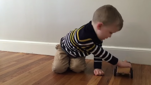子供が自動車のおもちゃを持ち、動かして遊んでいます。この遊んでいる様子をJiboが模倣して筐体と画面で再現をおこなうというものです。