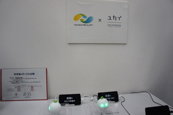 こちらは、人とは異なる抽象的な容姿のロボットが、人間同士の会話にどのような影響を与えるかという研究です。目の前にいない遠隔地の人とコミュニケーションする時、自分自身の存在の代わりになるロボットを目指しています。