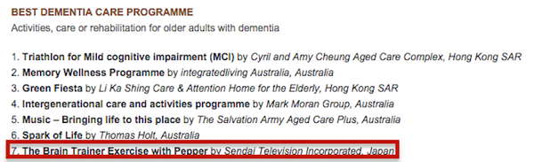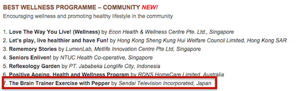 仙台放送とフューブライト・コミュニケーションズ株式会社によるPepperのロボアプリ『いきいき脳体操』が、Asia Pacific Eldercare Innovation Awards 2016(アジア太平洋高齢者ケア・イノベーション・アワード)のファイナリストとなりました。