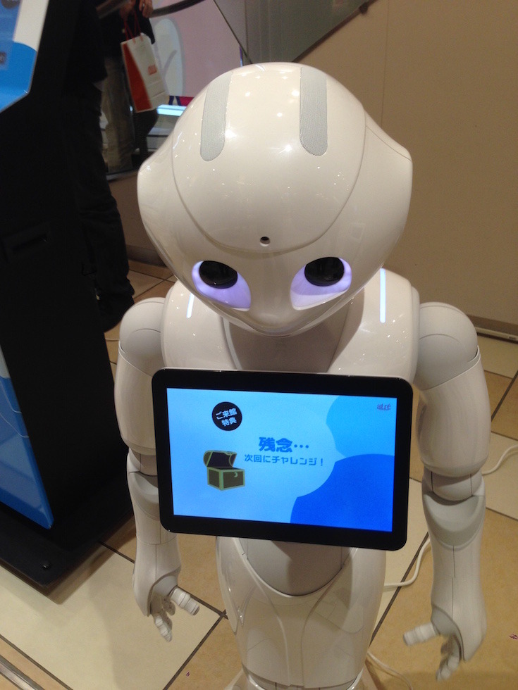 アトレ秋葉原の一階エスカレーター横のスペースに行ってみると、早速いました。Pepperくん。