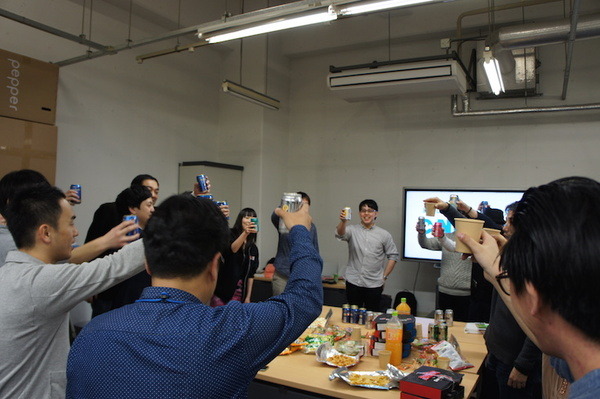 その後、参加者とスタッフで懇親会です。今日のハッカソンを振り返ってみんなで盛り上がりました。