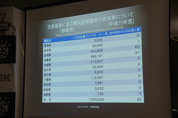 被災した家屋の写真をアップすると、Watsonで写真を識別します。結果に応じて仮の罹災証明書を自動発行し、各種の初期手続きに利用するというものです。