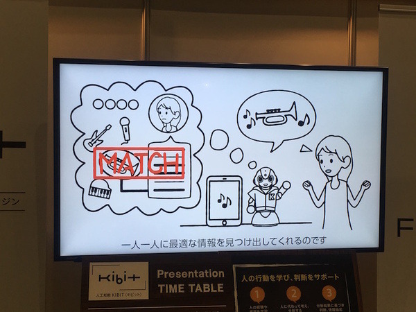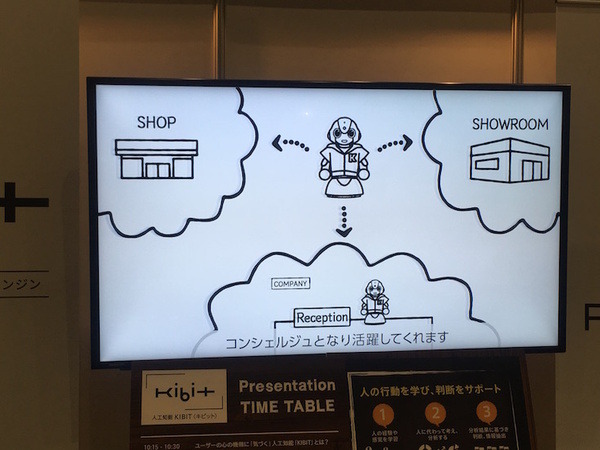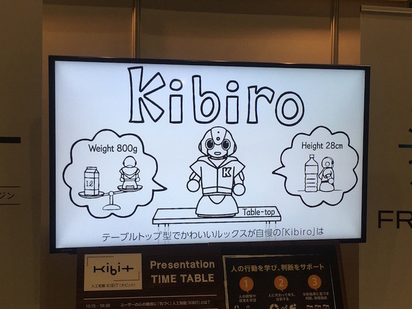 会場入ってすぐに人工知能KIBIT(キビット)を搭載ロボットKibiroくんがいると思ったら、株式会社FRONTEOのブースでした。(同社は7月1日より株式会社UBICから社名を変更しました)
