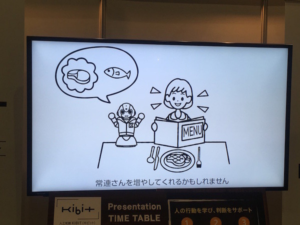例えば、レストランにいるKibiroくんは、人工知能を使ってお客様一人ひとりにとってのお気に入りのメニューを見つけることにより、常連さんを増やしてくれるかもしれません。