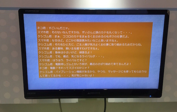 これらの普通のモノに対し、人工意識を搭載したイメージを紹介していました。ディスプレイを見ると、共通点のない3つのモノが雑談をしています。